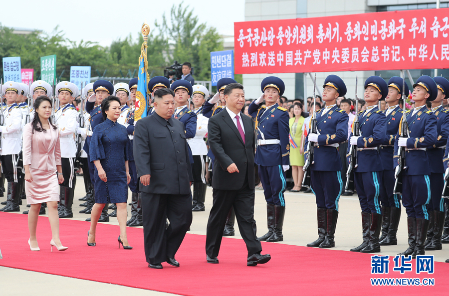 6月21日,中共中央總書記、國家主席習近平結束對朝鮮的國事訪問離開平壤回國。離開前,習近平和夫人彭麗媛出席朝鮮勞動黨委員長、國務委員會委員長金正恩和夫人李雪主在機場舉行的歡送儀式。新華社記者 鞠鵬 攝