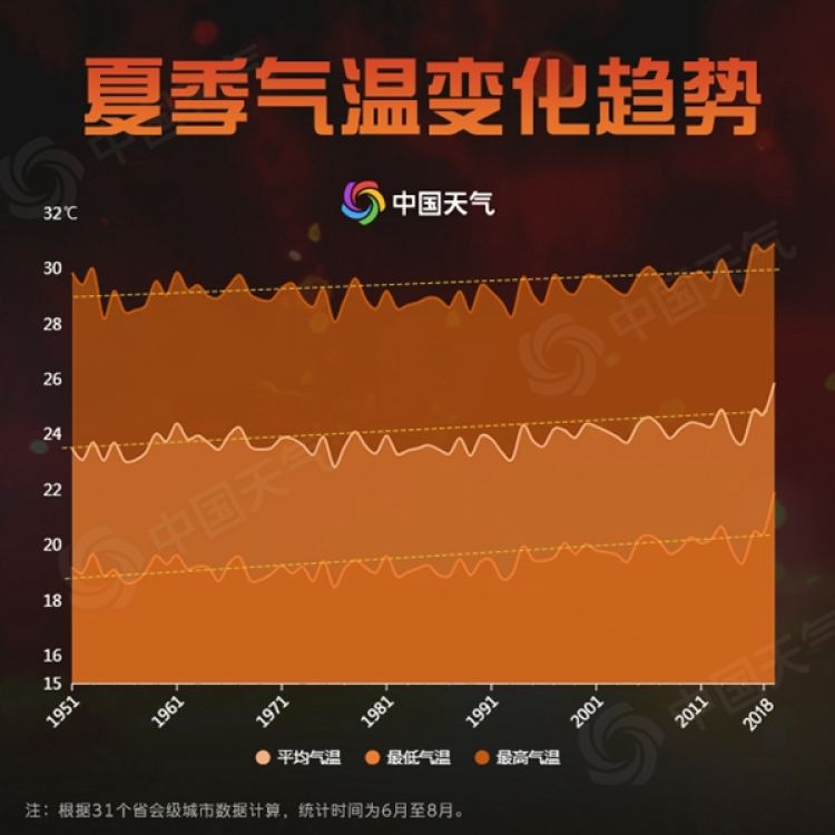夏天真的越來越熱了嗎?中國天氣網統計了1951年以來全國夏季年平均氣溫發現,無論平均氣溫、最高氣溫還是最低氣溫均出現上升趨勢,越來越熱并非錯覺。