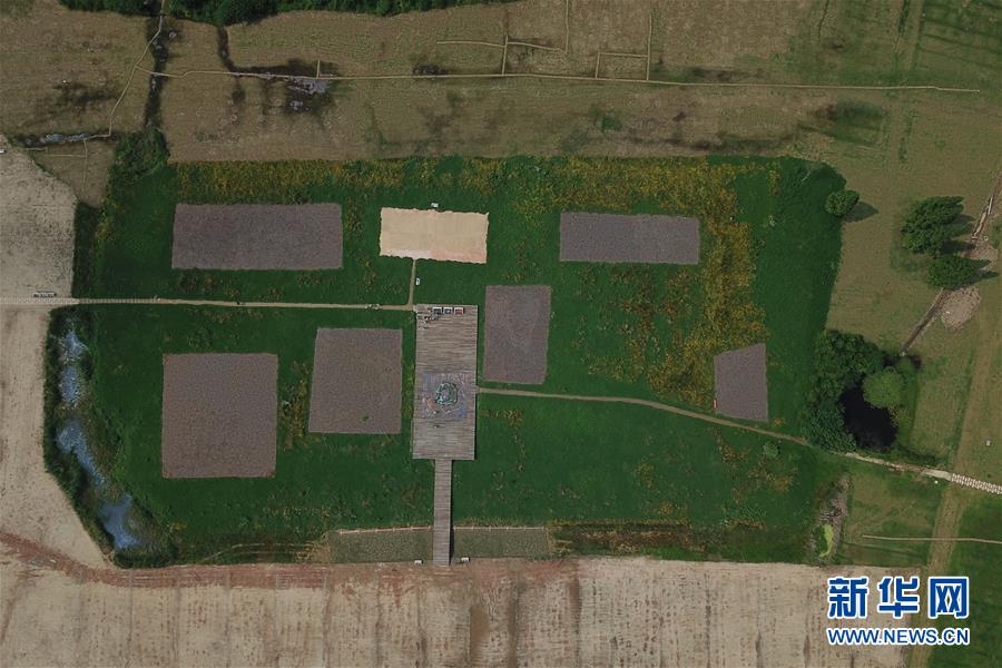 6月23日無人機拍攝的位于浙江省杭州市的良渚國家考古遺址公園的宮殿區(qū)。新華社記者 黃宗治 攝