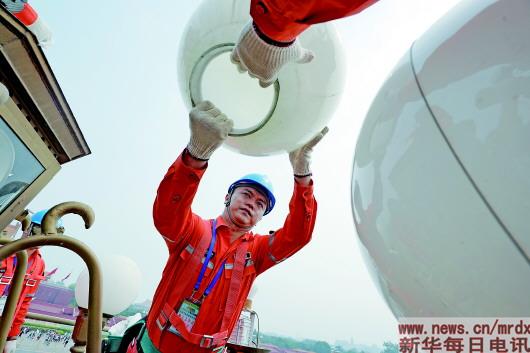 要保證華燈的萬無一失,除了經驗的積累,更要有對華燈事業的熱愛與擔當。越是惡劣天氣,越要沖在前面,是華燈班一直以來的堅持。“遇到雨雪天氣,不管在不在崗都惦記著華燈,在家休息也要跑回單位看看?!比A燈班第三任班長王鐵龍說。