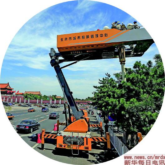 今年國慶節前,華燈班還將啟用第五代華燈作業車,可以實現自動停車入位,加裝了車載衛生間,在平臺上還可以進行電腦操控。