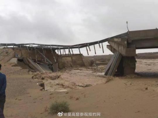 此前,通往敦煌莫高窟窟區的道路被沖毀