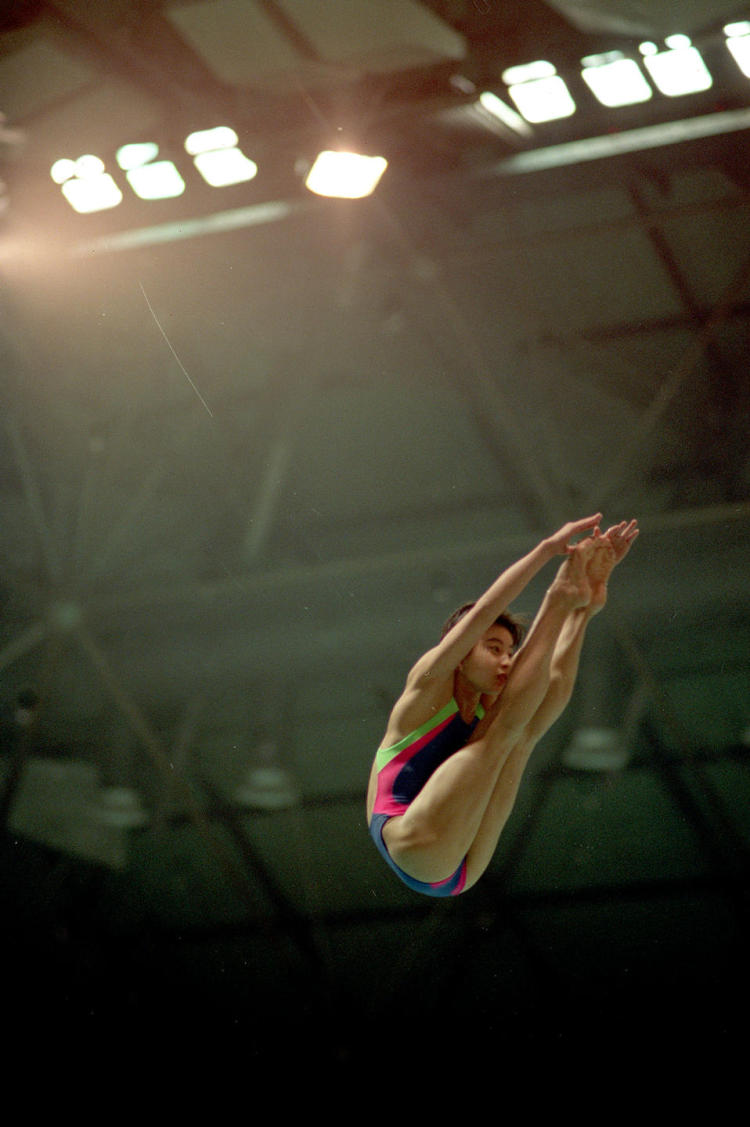 伏明霞在1991年第六屆世界游泳錦標賽女子跳臺跳水比賽中獲冠軍。新華社記者 程至善 攝