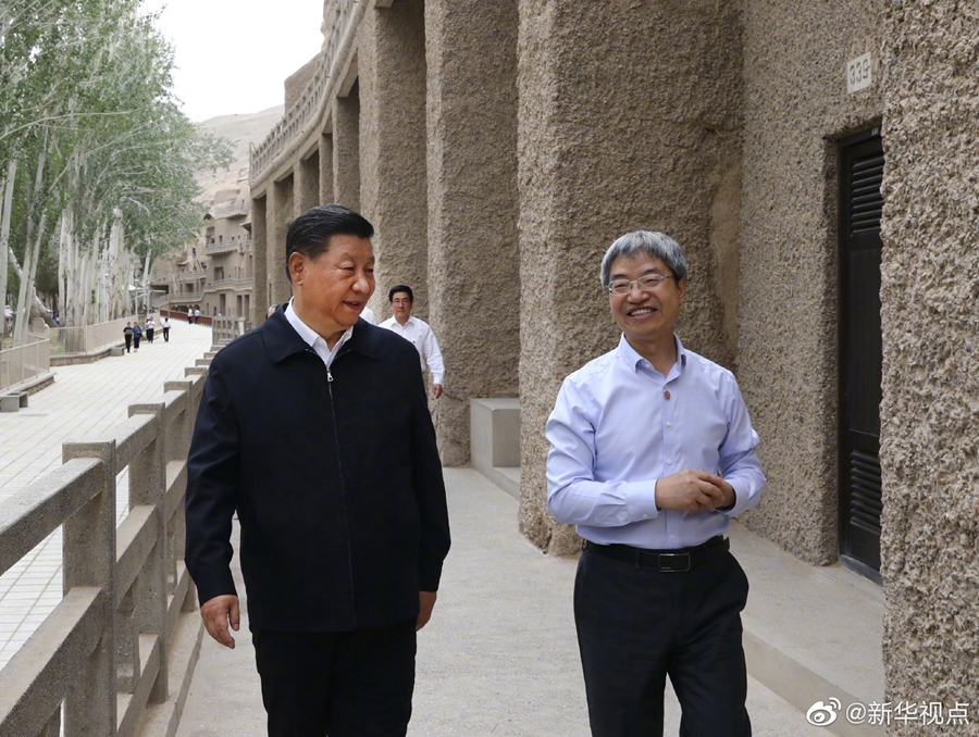 習(xí)近平總書記19日在甘肅省考察調(diào)研。當(dāng)天下午,他來到全國(guó)重點(diǎn)文物保護(hù)單位敦煌莫高窟,實(shí)地考察文物保護(hù)和研究、弘揚(yáng)優(yōu)秀歷史文化等情況。(文字:張曉松、朱基釵 攝影:鞠鵬、謝環(huán)馳)