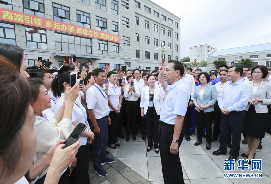 8月19日至20日,中共中央政治局常委、國務院總理李克強在黑龍江牡丹江、哈爾濱考察。這是8月19日,李克強與牡丹江技師學院師生交流,勉勵學員們培養專業精神、工匠精神。 新華社記者 龐興雷 攝