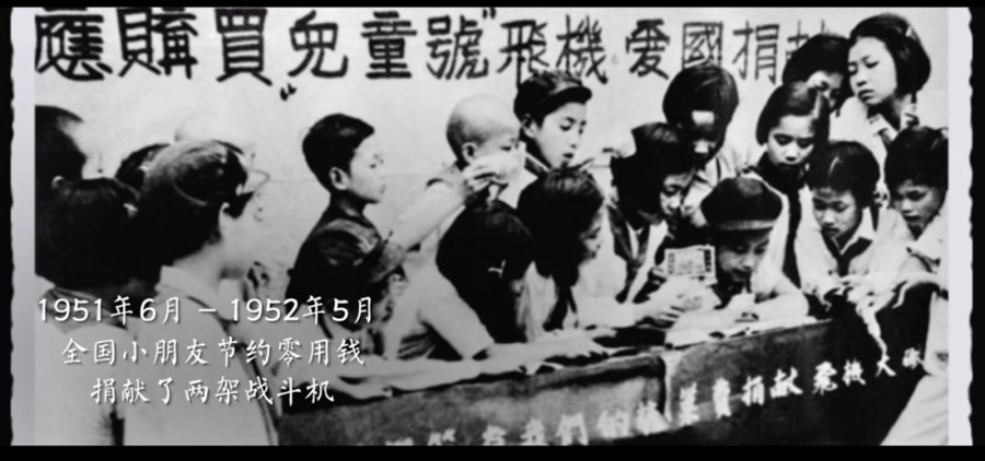 1951年6月,全國(guó)少先隊(duì)員通過(guò)搜集廢銅、廢鋼鐵,打柴割草,飼養(yǎng)小牲畜等,用自己的勞動(dòng)成果和零用錢,支持購(gòu)買飛機(jī),派出代表參加赴朝慰問(wèn)團(tuán),還給志愿軍寫信、慰問(wèn)軍烈屬。