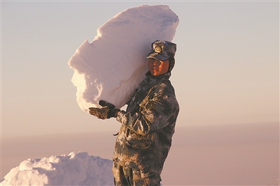 山頂終年風(fēng)大雪勁,冬雪襲來,次日清晨官兵只得一次次扛起雪塊,清理通往陣地的山路。