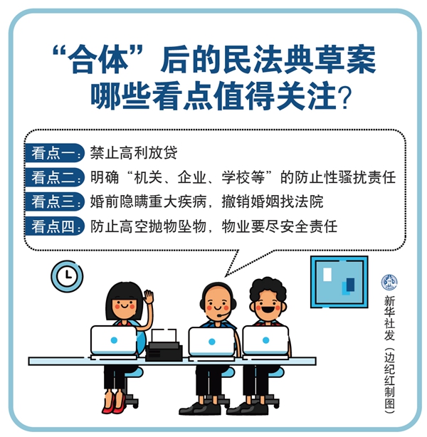 從明確禁止高利放貸、進一步完善防止性騷擾有關規定,到合理確定無效婚姻的情形、完善高空拋物墜物責任規則,民法典草案的諸多新看點值得關注。
