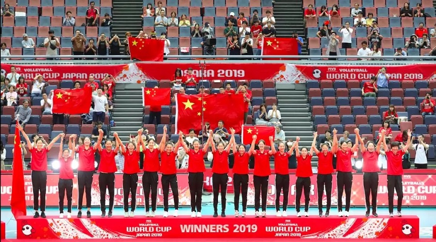 中國女排又一次登上世界冠軍領獎臺。在新中國成立70周年前夕,喜訊傳來,舉國振奮?!白鎳辽?、團結協作、頑強拼搏、永不言敗”,女排精神代表著一個時代的精神,喊出了為中華崛起而拼搏的時代最強音。
