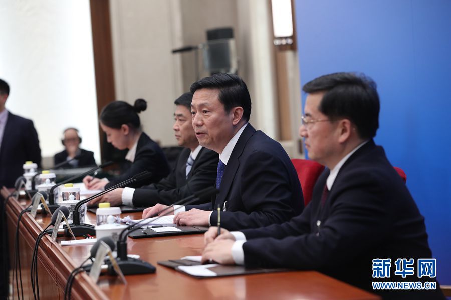 全國政協十三屆二次會議新聞發布會于3月2日15:00在人民大會堂一層新聞發布廳召開,大會新聞發言人郭衛民向中外媒體介紹本次大會有關情況并回答記者提問。圖為新聞發言人郭衛民(右二)介紹本次大會有關情況。新華網/中國政府網 翟子赫 攝
