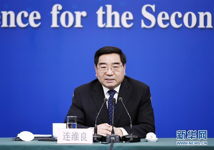 3月6日,十三屆全國人大二次會議新聞中心舉行記者會,邀請國家發展和改革委員會主任何立峰,副主任寧吉喆、連維良就“大力推動經濟高質量發展”相關問題回答中外記者的提問。這是連維良在回答記者提問。 新華社記者 王鵬 攝