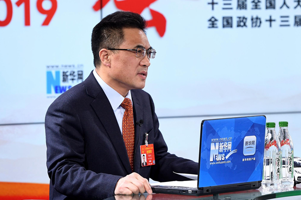 3月6日,全國人大代表、四川省生態環境廳黨組書記、廳長于會文作客新華網2019全國兩會特別報道。新華網 李相博 攝
