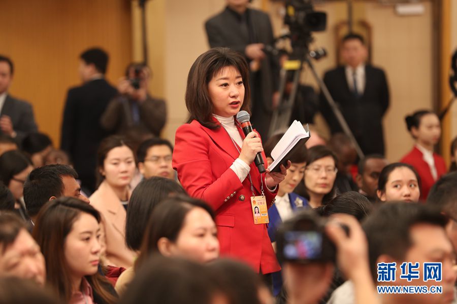 十三屆全國人大二次會議新聞中心于3月7日10時50分在梅地亞中心新聞發布廳舉行記者會,邀請國務院扶貧開發領導小組辦公室主任劉永富就“攻堅克難——堅決打贏脫貧攻堅戰”相關問題回答中外記者提問。圖為成都廣播電視臺神鳥資訊記者提問。新華網 陳杰 攝