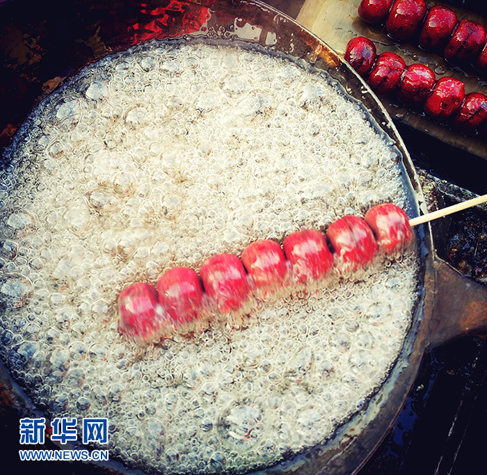 廟會(huì)上,冰糖葫蘆五彩繽紛