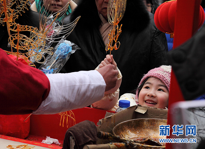 2014年2月4日,一名女孩在廠甸廟會(huì)上挑選老北京手工藝品。(圖片來(lái)源:新華社 記者郝麗穎 攝)
