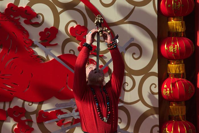 廠甸廟會(huì)天橋藝人表演吞寶劍,這活兒我勸您別模仿。(圖片來(lái)源:東方IC)