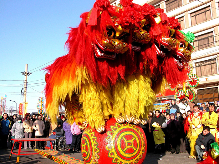 北京廠甸廟會(huì)上的獅子滾球表演。(圖片來(lái)源:東方IC)