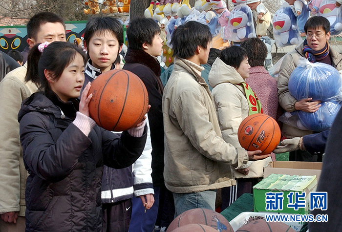 2006年1月31日,市民在廟會(huì)上玩起投籃游戲。(圖片來(lái)源:新華社 記者 王呈選攝)