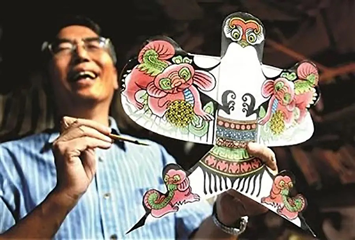 金馬派風(fēng)箏傳人呂鐵智展示沙燕風(fēng)箏制作技藝。