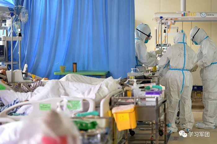 1月27日上午,海軍軍醫(yī)大學(xué)醫(yī)療隊(duì)醫(yī)護(hù)人員在漢口醫(yī)院重癥監(jiān)護(hù)室對(duì)新型冠狀病毒感染的肺炎患者進(jìn)行救治。醫(yī)護(hù)人員加強(qiáng)巡視,觀察輸液滴數(shù)。解放軍報(bào)記者范顯海攝