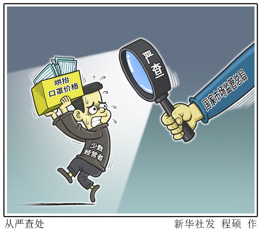 據介紹,1月25日,市場監管總局發布公告,要求各級市場監管部門依法從嚴從重從快打擊少數經營者串通漲價、哄抬價格、價格欺詐等違法行為,堅決維護防疫用品市場價格秩序。公告下發后,全國各級市場監管部門迅速出擊,嚴肅查處少數“發疫情財”的違法經營者。