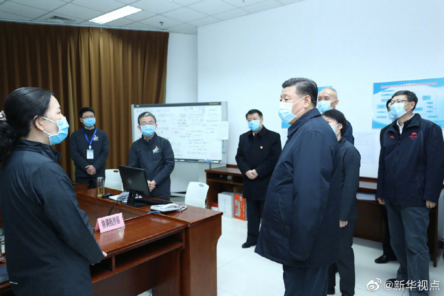 10日下午,習近平來到北京地壇醫院,察看新冠肺炎感染者住院診療情況,視頻連線武漢市重癥患者收治醫院,聽取中央指導組、湖北指揮部有關情況匯報,慰問奮戰在一線的醫務工作者。隨后,習近平前往朝陽區疾病預防控制中心,了解朝陽區開展應急處置、流行病學調查、篩查報告和北京市疫情防控工作情況。(文字記者張曉松 攝影記者鞠鵬、謝環馳、劉彬)?