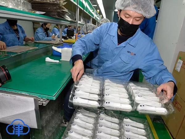 施向健大年初一就開始安排復工的生產計劃、物料準備等工作。正月初四,三分之一員工到崗,開始恢復生產。“現在有250多名員工參加生產,以本地員工為主。目前,我們只生產紅外線額溫計,停止了其他所有商業(yè)需求,全力配合公共衛(wèi)生防疫需求。”施向健告訴記者。
