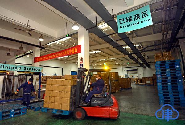 下午4點半,記者來到新區(qū)的另一家復工企業(yè)——天津金鵬源輻照技術有限公司。在輻照車間調度室,生產部兩位值班主任錢寧勇和趙志強正在交班,監(jiān)控系統(tǒng)屏幕上數據不停跳動,實時顯示每一拖箱貨物輻照殺菌的進程狀態(tài)。
