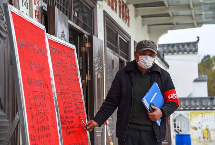 除夕。袁湖村給全體村民免費(fèi)發(fā)口罩,一人一個(gè)。全村有14戶“新香”(按當(dāng)?shù)仫L(fēng)俗,親屬到當(dāng)年去世的人墳前上香)家庭,全部取消“新香”活動(dòng)。他還要求:“明天大年初一,不要相互拜年,不要串門。”