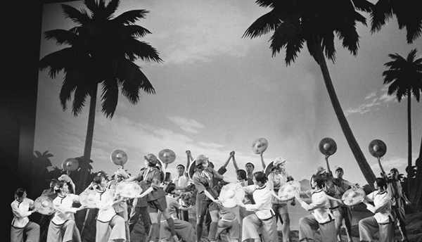 1973年2月10日,日本松山芭蕾舞團(tuán)的演員和中國(guó)舞劇團(tuán)的演員,在北京天橋劇場(chǎng)同臺(tái)演出《紅色娘子軍》。 新華社記者王景英攝