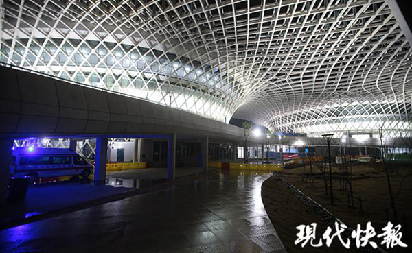 當晚 9 點,現(xiàn)代快報記者在現(xiàn)場看到,位于大花山戶外運動中心的江夏方艙醫(yī)院仍然亮著燈,不斷有車輛將患者轉運至此。醫(yī)護人員在場館內,將患者安排到相應的床位,并詢問病情。