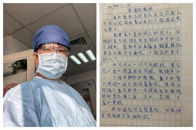 厚厚的防護(hù)服把爸爸包裹的嚴(yán)嚴(yán)實(shí)實(shí)