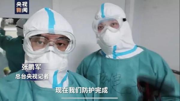 中央廣播電視總臺記者張鵬軍、賴健進入武漢市漢口醫院隔離區采訪。