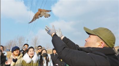 山東省青島市城陽區(qū)野生動植物保護志愿者在白沙河入海口濕地,放歸一只救助的國家二級重點保護動物紅隼。 王海濱攝