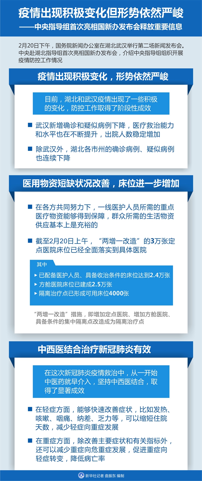 新華社武漢2月20日電 題:疫情出現(xiàn)積極變化但形勢(shì)依然嚴(yán)峻——中央指導(dǎo)組首次亮相國(guó)新辦發(fā)布會(huì)釋放重要信息