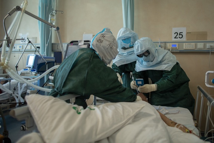 2月20日,高峰值班。他得到通知,當(dāng)天有兩例病人需要插管。經(jīng)過與主治醫(yī)師溝通,決定在上午進行。“敢死隊”護士先在病房內(nèi)準(zhǔn)備工具、藥品,然后通知高峰準(zhǔn)備。