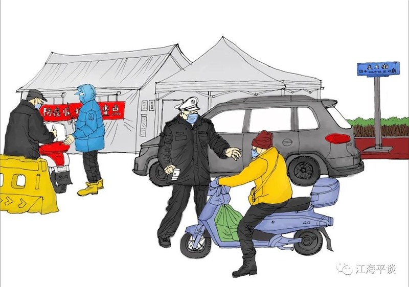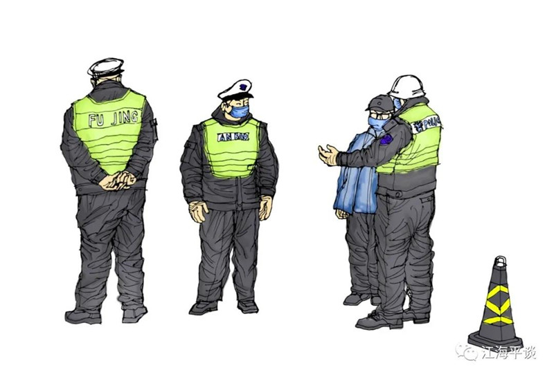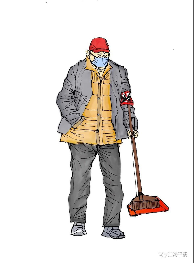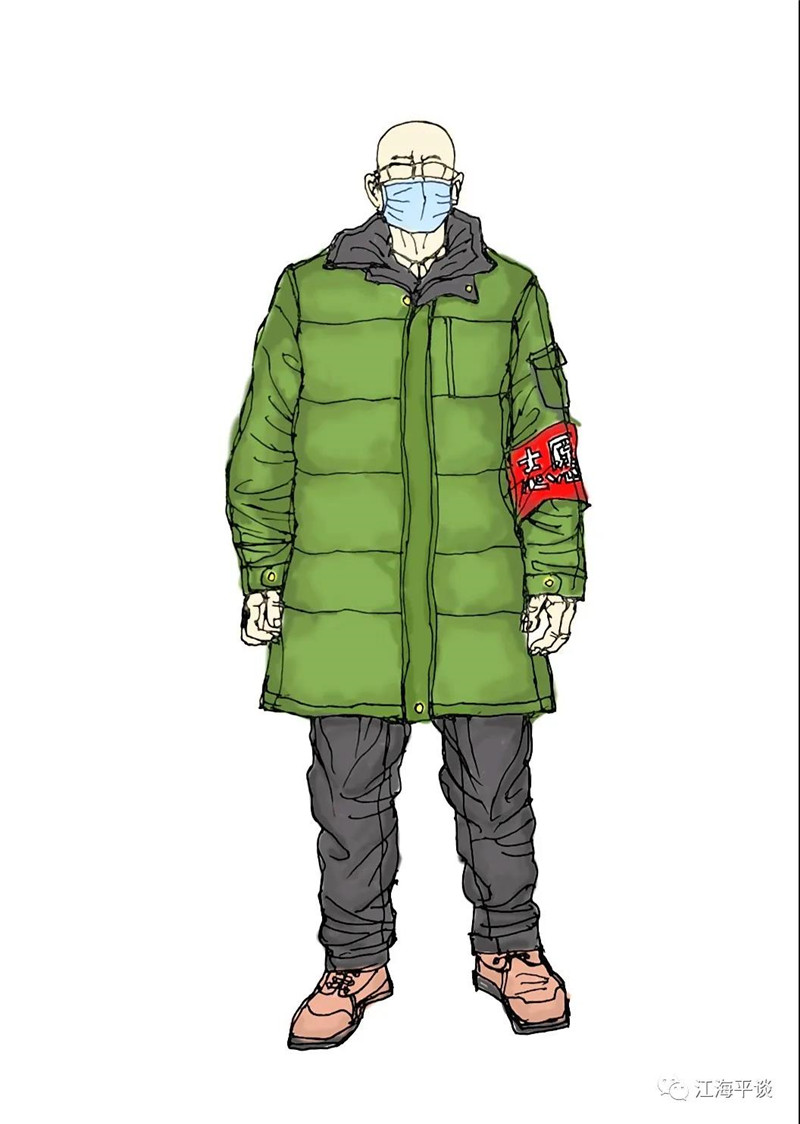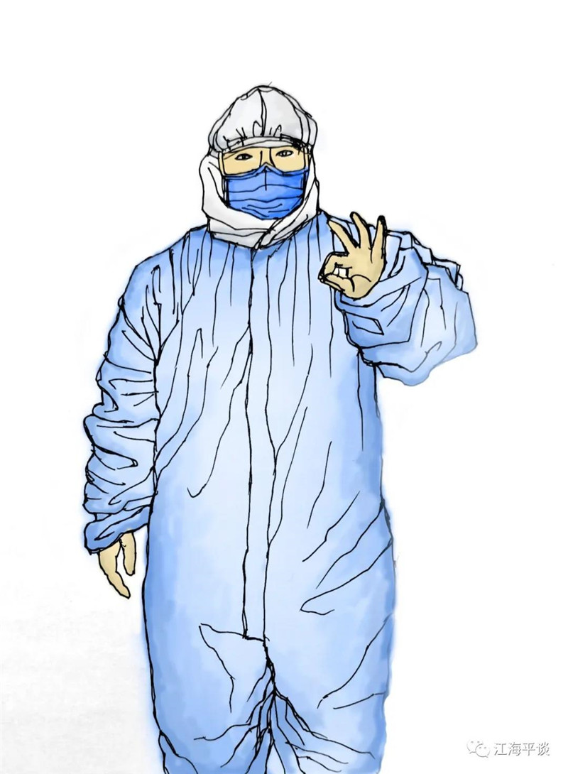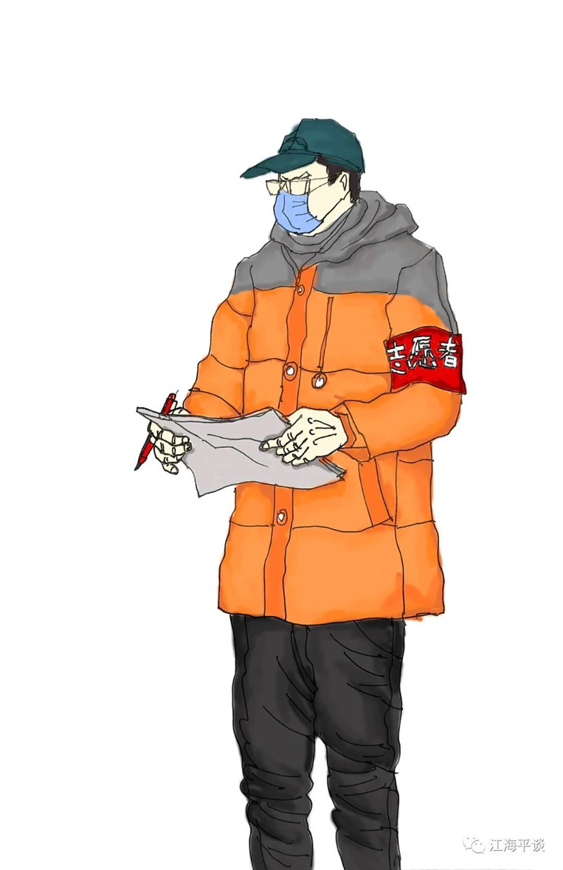 我用速寫的形式,把自己每天看到聽到的最動人的故事或場景記錄下來,組成了一幅幅“防控抗疫”的群英圖譜,特別是那些奮戰在一線的廣大醫務工作者以及在街頭巷尾,社區民宅忘我工作、無私奉獻的街道干部和志愿者是我描繪的主要對象。雖然,他們都是普普通通的人,但他們都做出了不平凡的事。他們是這個時代真正的英雄,也是這個時代最可愛的人!
