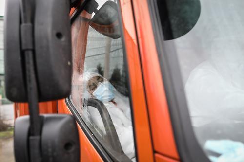 2月26日,湖北省武漢市,準(zhǔn)備進入醫(yī)療垃圾焚燒場時,正在等待的醫(yī)療垃圾搬運員。中青報·中青網(wǎng)記者 趙迪/攝