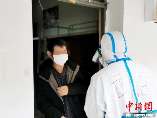 醫(yī)護(hù)人員向治愈出院患者了解身體狀況。