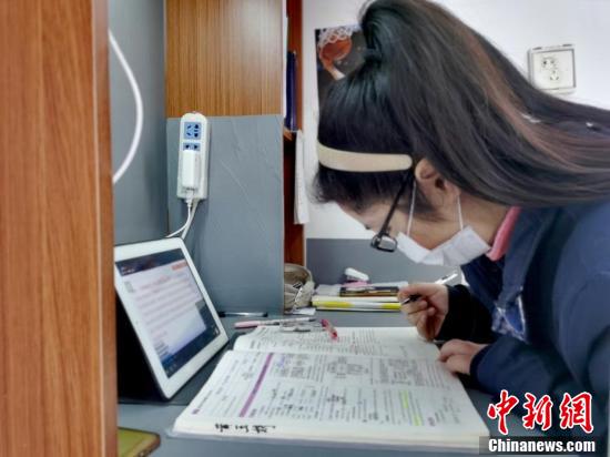 治愈出院患者在隔離點(diǎn)上網(wǎng)課。