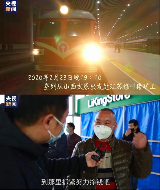 在奔馳的列車上,礦工任寶蘇說:“我看到新聞說,武漢有鋼廠沒有煤用,停產了,我就著急。需要我們去復工,我們馬上就去。”