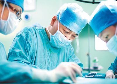 手術臺上的江學慶(中)。 武漢市中心醫院供圖