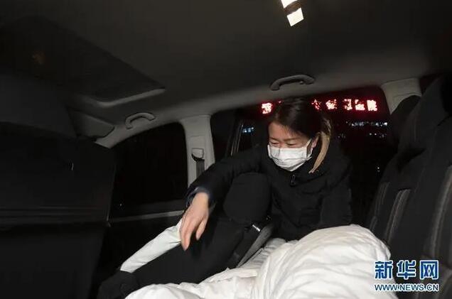 在武漢市金銀潭醫(yī)院內(nèi),涂盛錦(左)和曹珊在車內(nèi)休息。新華社記者 熊琦 攝