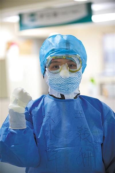 在口罩、手套、眼罩、鞋套、防護服的重重包裹下,田蓉的動作變得有些緩慢。但經(jīng)過一個多月的一線工作,她已經(jīng)適應(yīng)了這樣的全副武裝,還摸索出了一些小技巧。剛來時,她依照網(wǎng)傳的經(jīng)驗,用洗滌靈擦拭防護眼罩,防止霧氣上鏡,結(jié)果剛進病房眼前就糊了,只能用余光搜尋霧氣的“破綻”,借助一小片視野完成救治。后來,田蓉將洗滌靈換成碘伏,效果不錯,擺脫了霧氣的困擾。