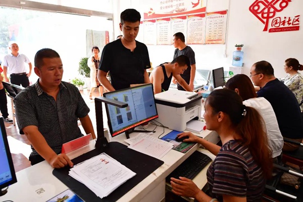 社區居民在河南省鄧州市花洲街道辦事處中州家園社區為民服務大廳辦理業務 馮大鵬 攝