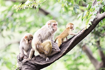 生活在貴陽市黔靈山公園內的獼猴 記者 徐譚攝