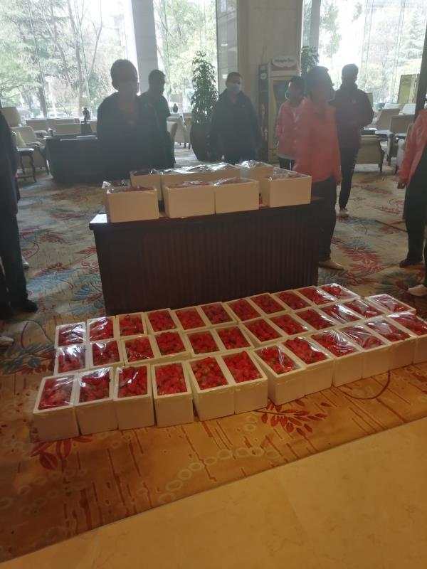 據(jù)前來送草莓的康復(fù)患者稱,這些草莓是江岸方艙醫(yī)院64名病友花費(fèi)了1.6萬元購買送給河北的醫(yī)護(hù)人員。為了保證草莓的新鮮,武漢當(dāng)?shù)剞r(nóng)民從凌晨3點(diǎn)就開始采摘。“這是我們的一點(diǎn)心意,如果不是你們的幫助,單靠武漢的醫(yī)務(wù)人員確實(shí)是挺不住的,很感謝你們從全國各地來幫助我們,這次疫情來的很突然,我的母親也因病毒感染去世。小家的母親走了,但是你們卻拯救了武漢這個大家。非常感謝你們。希望大家把這點(diǎn)心意和問候帶回河北,同時也希望大家一路平安,感謝你們對我們武漢的很大幫助。謝謝大家!”