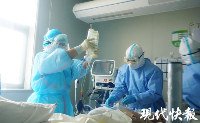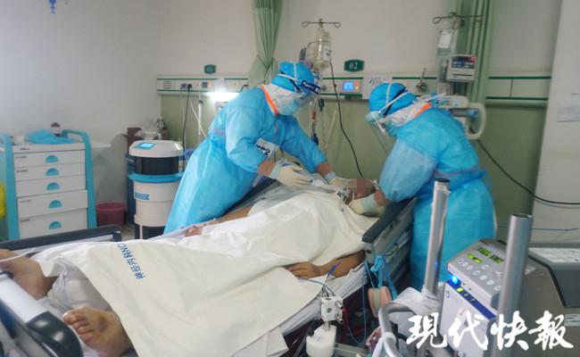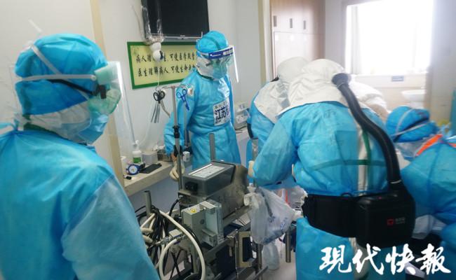 現代快報記者穿好防護服,與醫護人員一同進入重癥病房。