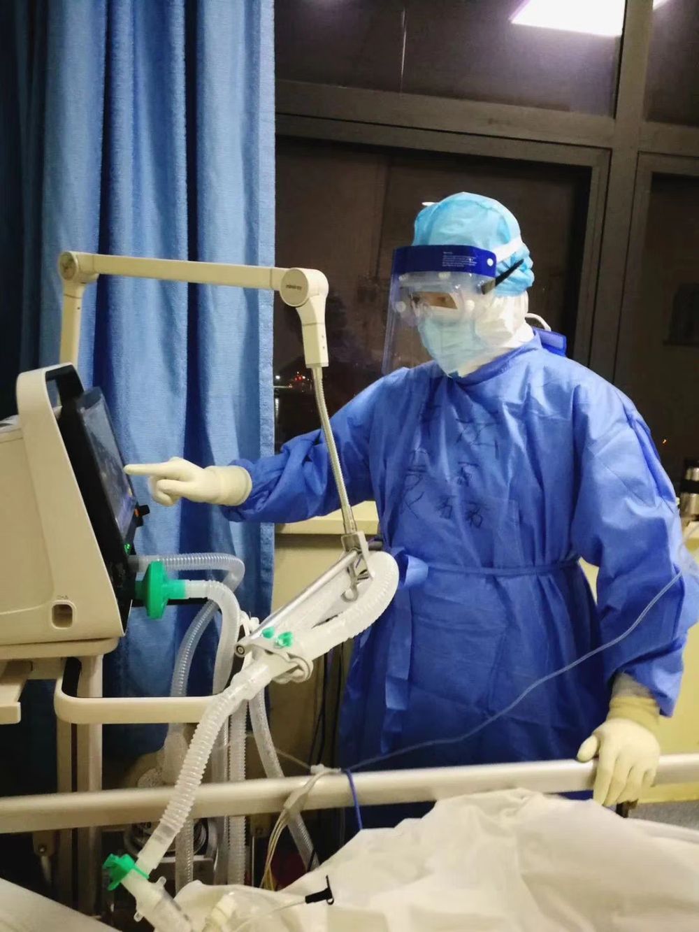 圖為北京天壇醫院援湖北醫療隊袁磊在工作中。