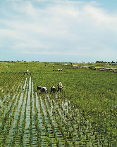 在吉林松原市前郭爾羅斯蒙古族自治縣查干湖鎮(zhèn)欣發(fā)村,農(nóng)民在有機(jī)稻田中除草。記者 孟海鷹攝(資料圖片)